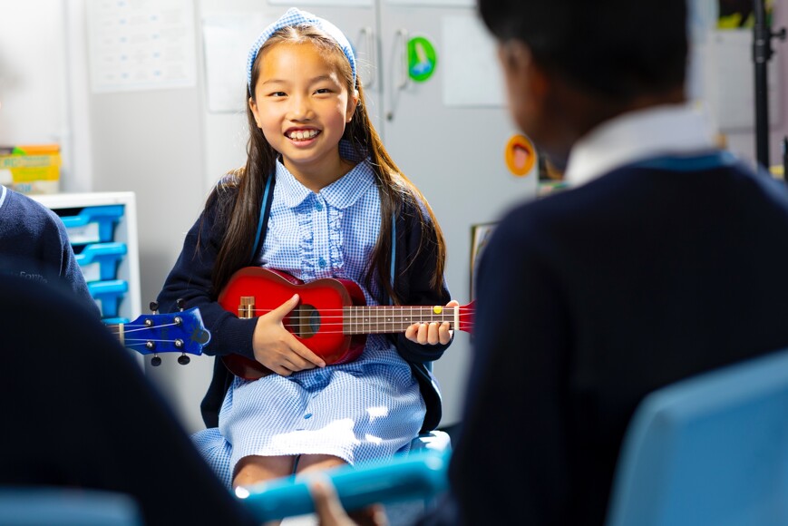 Our children learn to analyse rhythm, beat, pitch and structure to deepen their understanding of how music is made. These skills are then transferred into their own performances and compositions.