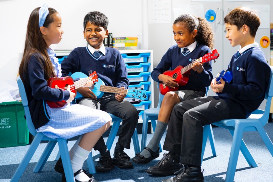 Ensuring children have a meaningful and inclusive music education is a priority here at La Fontaine. We provide our children with the opportunity to appraise, perform and compose a range of diverse music, covering anything from the Medieval Period, right through to the music of modern day.